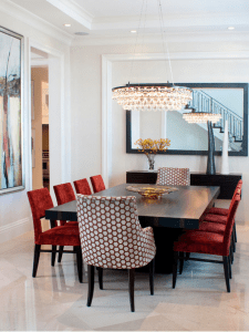 No caso de lustre para sala de jantar, é preciso ter atenção especial à forma da mesa: mesas ovais e redondas pedem lustres que acompanhem as suas formas, enquanto que as quadradas e retangulares podem ou não seguir esta regra.