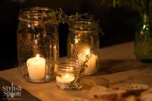 As velas são itens imprescindíveis para festas ao ar livre para criar uma iluminação intimista. Para isso, coloque as velas em candelabros, castiçais e lustres, para trazer um clima mais sofisticado. Em alguns casos, também é possível usar as velas para montar os arranjos e destacar mais as cores das flores.