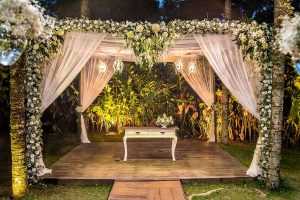 Se a sua cerimônia será realizada ao final do dia, na hora do pôr-do-sol, especialmente em praias, vale a pena apostar em lamparinas e tochas. O cenário ficará perfeito, digno de fotos e filmagens de filmes românticos!