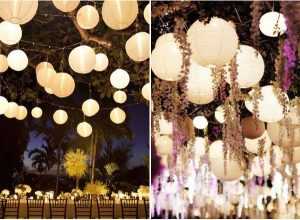 As lanternas de papel, também conhecidas como lanternas chinesas, representam uma ótima opção para iluminar casamentos ao ar livre. Crie uma linda decoração pendente com essas peças e deixe a cerimônia iluminada.