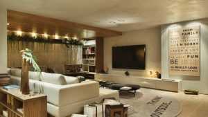 Quando estamos assistindo televisão, qualquer outra luz pode acabar incomodando e cansando os olhos. Portanto, o ideal é instalar as luminárias em cima do sofá, por exemplo, que ficará atrás das pessoas sentadas nele. Assim, essa iluminação indireta garante mais conforto para os olhos.